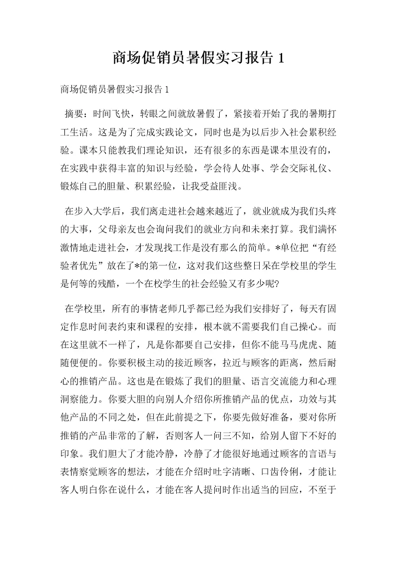 商场促销员暑假实习报告