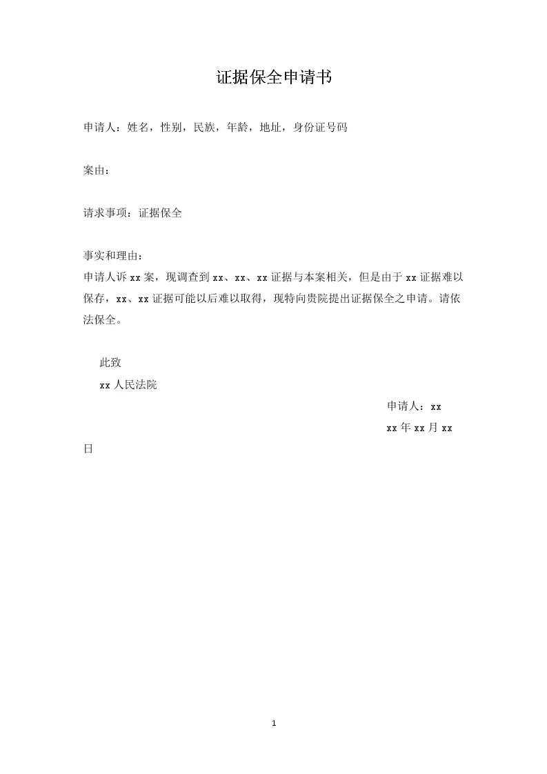 证据保全申请书范本...