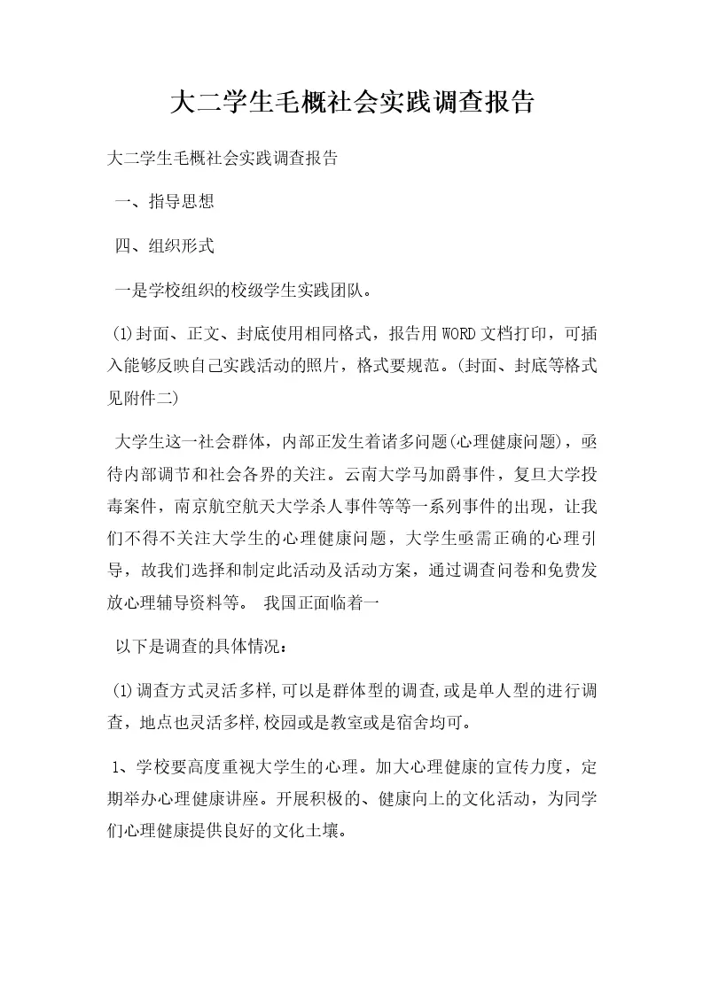 大二学生毛概社会实...