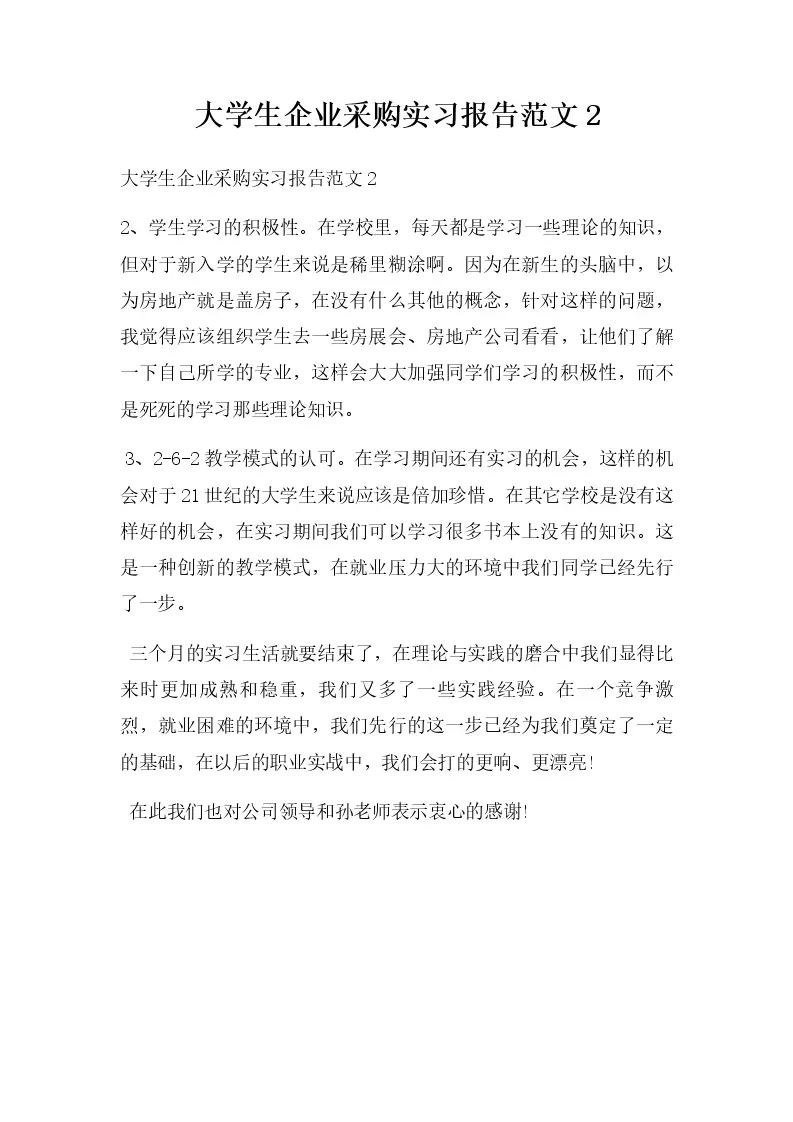 大学生企业采购实习报告范文