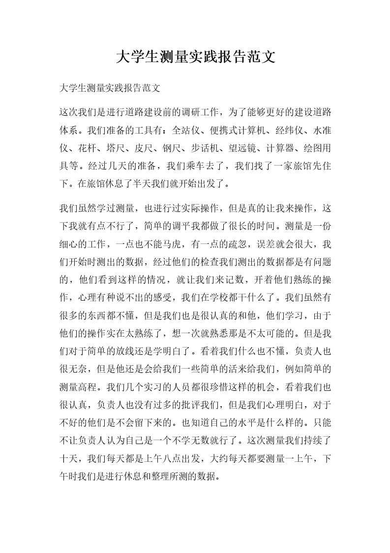 大学生测量实践报告范文