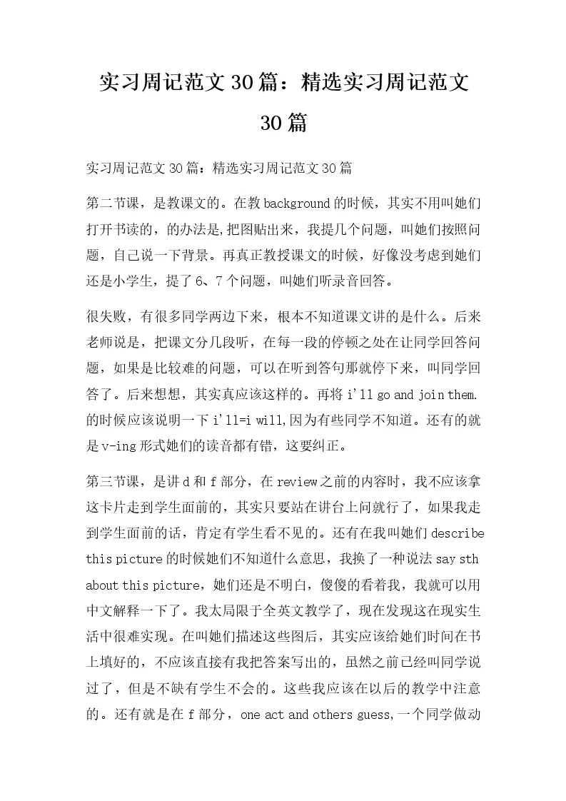 实习周记范文30篇...