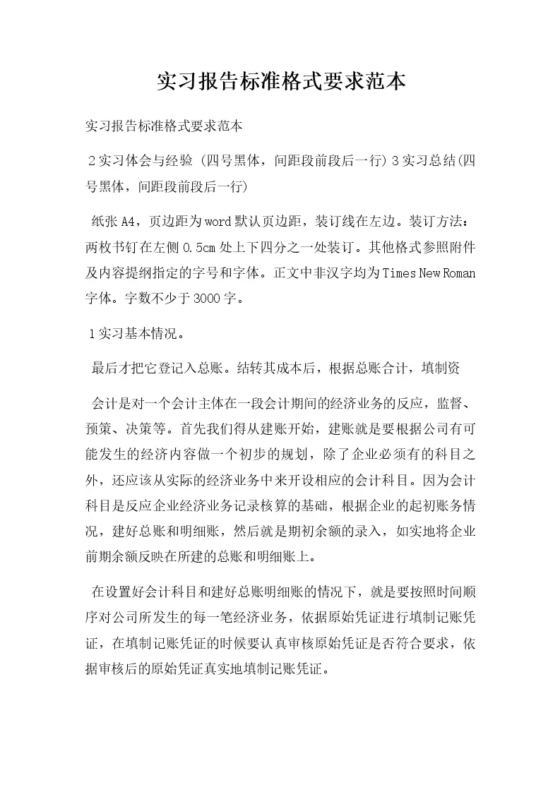 实习报告标准格式要求范本