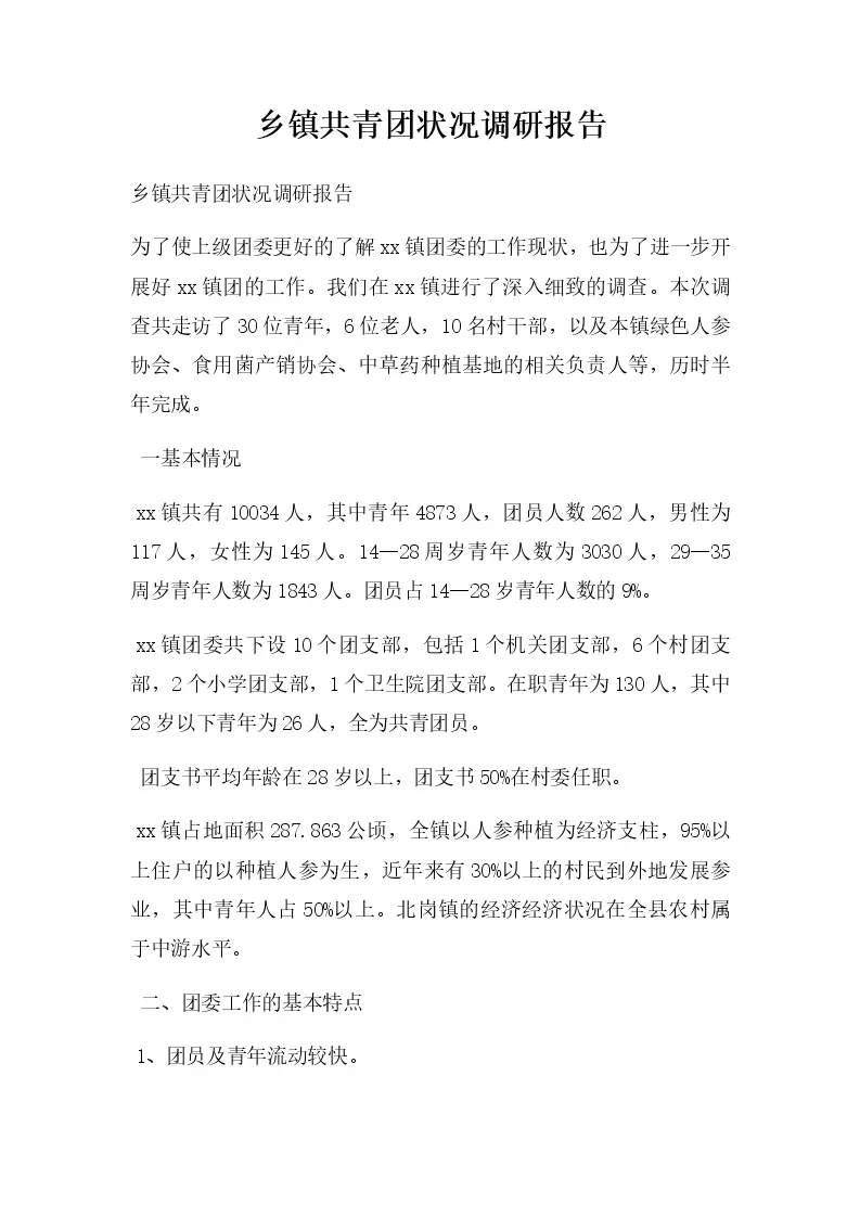 乡镇共青团状况调研...