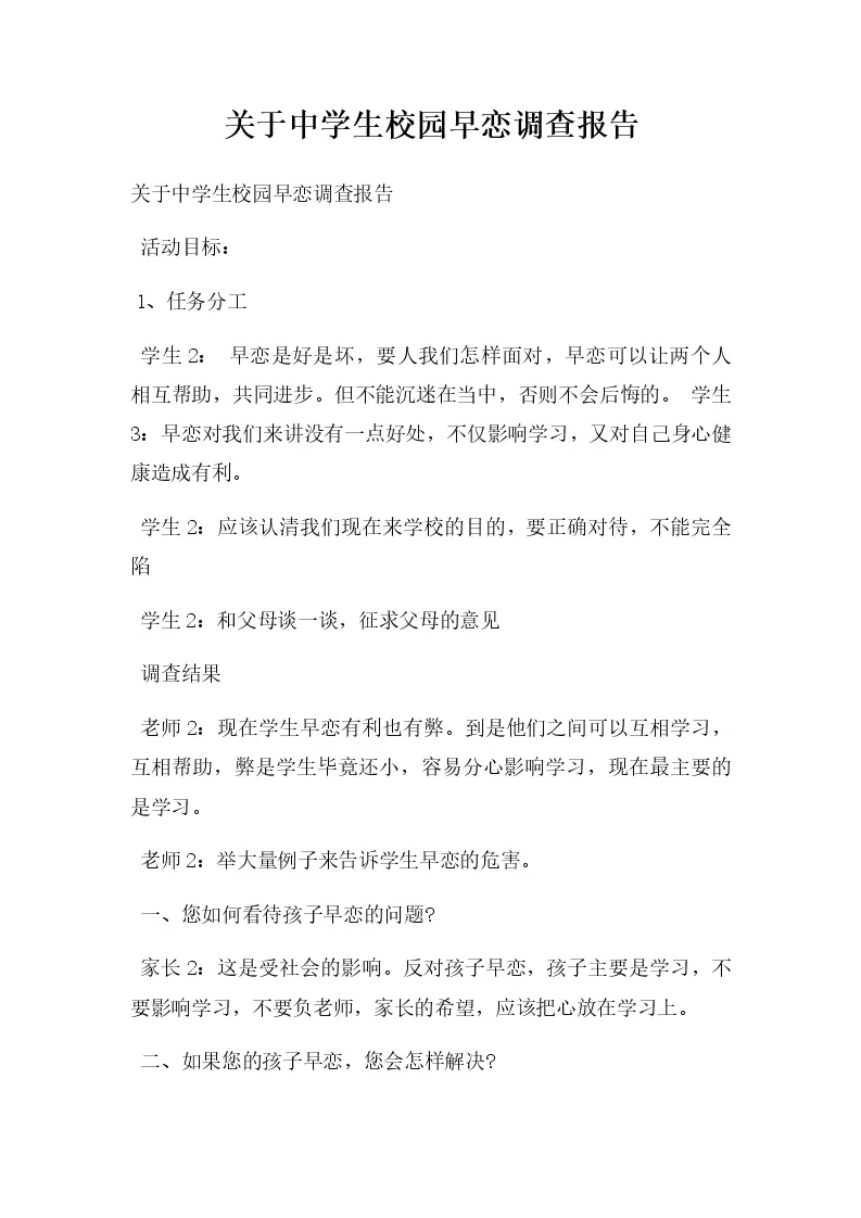 中学生校园早恋调查报告