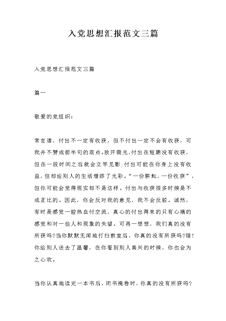 入党思想汇报范文三篇