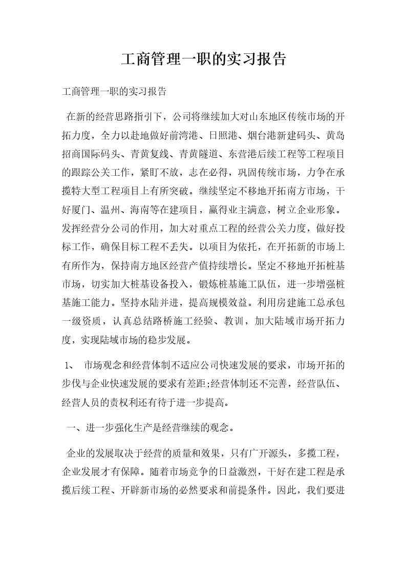 工商管理一职的实习报告