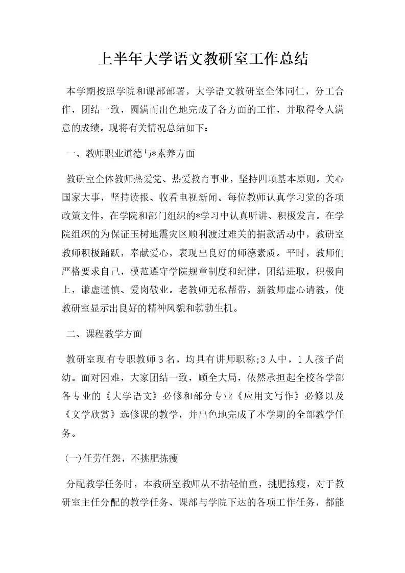 上半年大学语文教研室工作总结