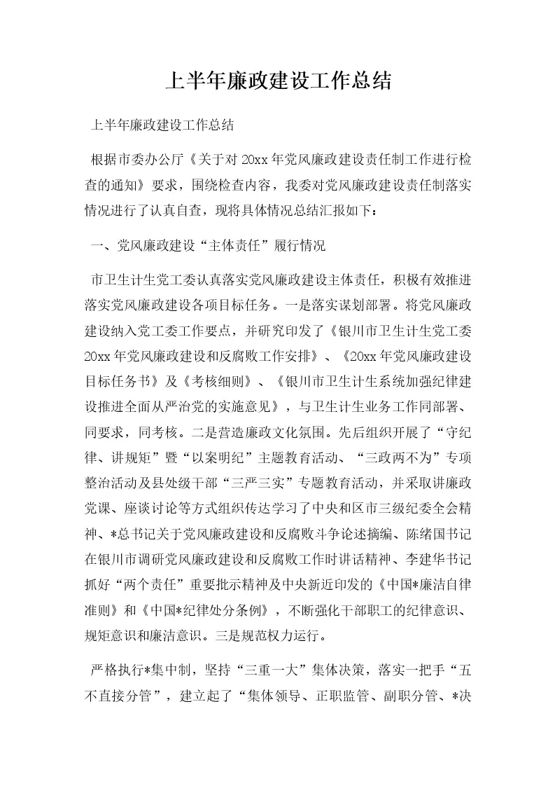 上半年廉政建设工作总结