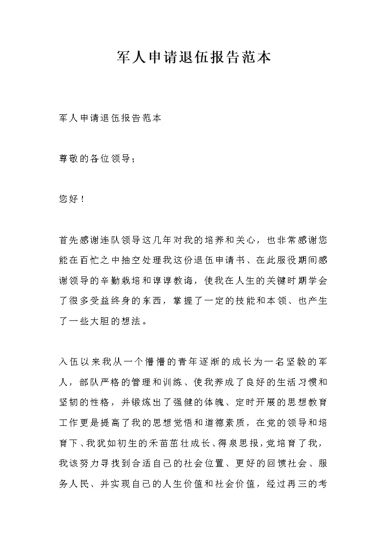 军人申请退伍报告范本