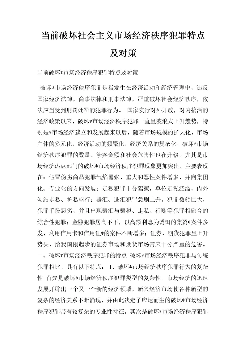 当前破坏社会主义市场经济秩序犯罪特点及对策