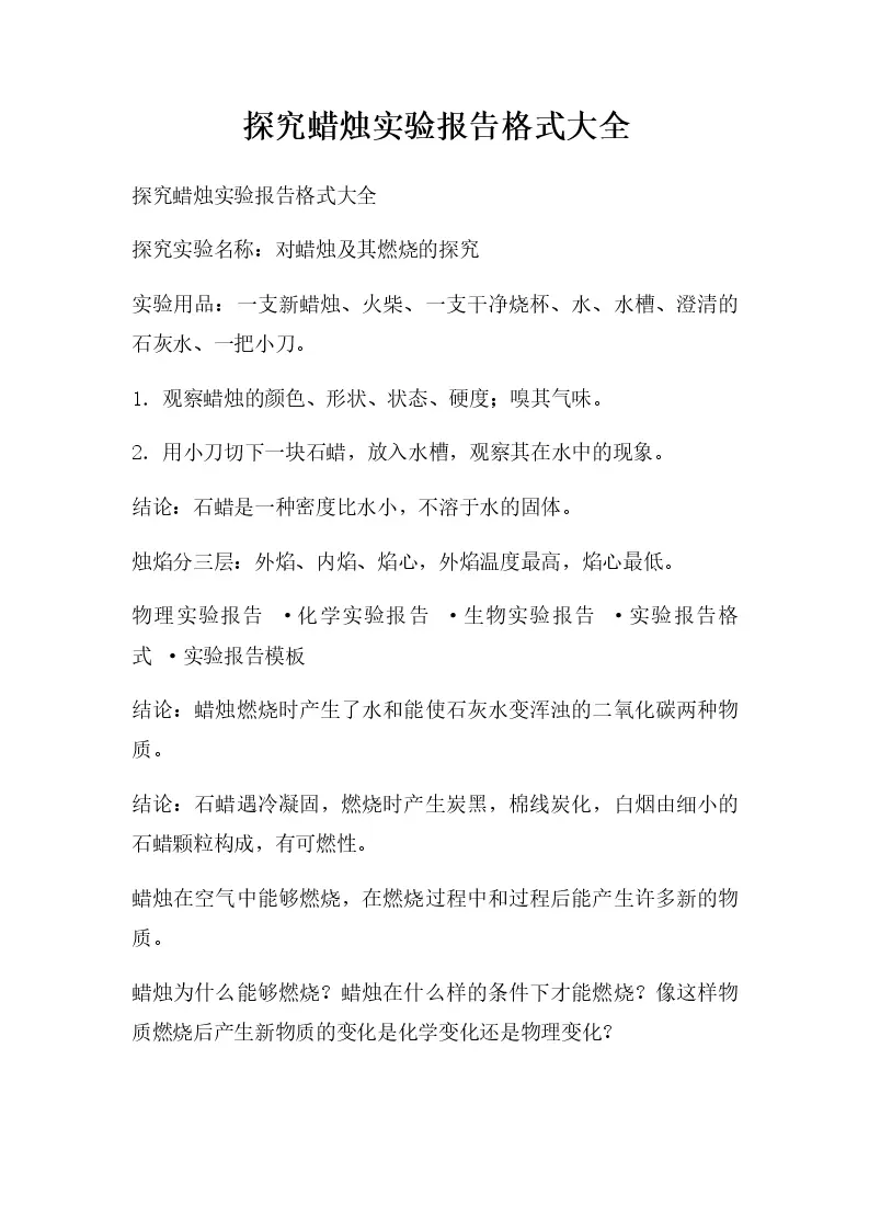 探究蜡烛实验报告格式大全