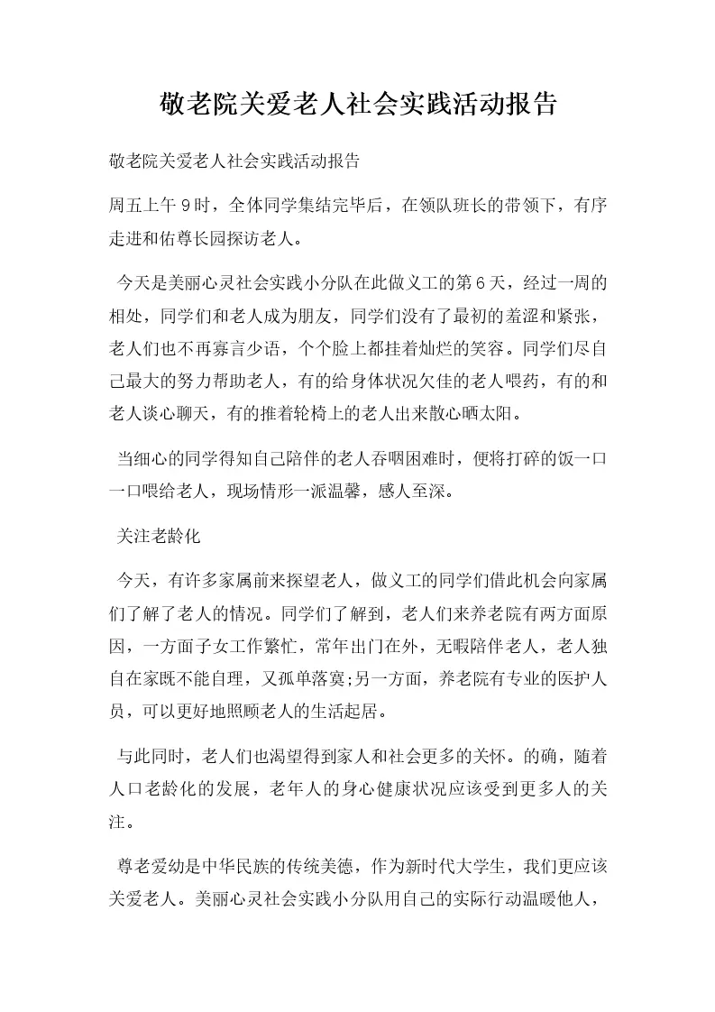 敬老院关爱老人社会实践活动报告