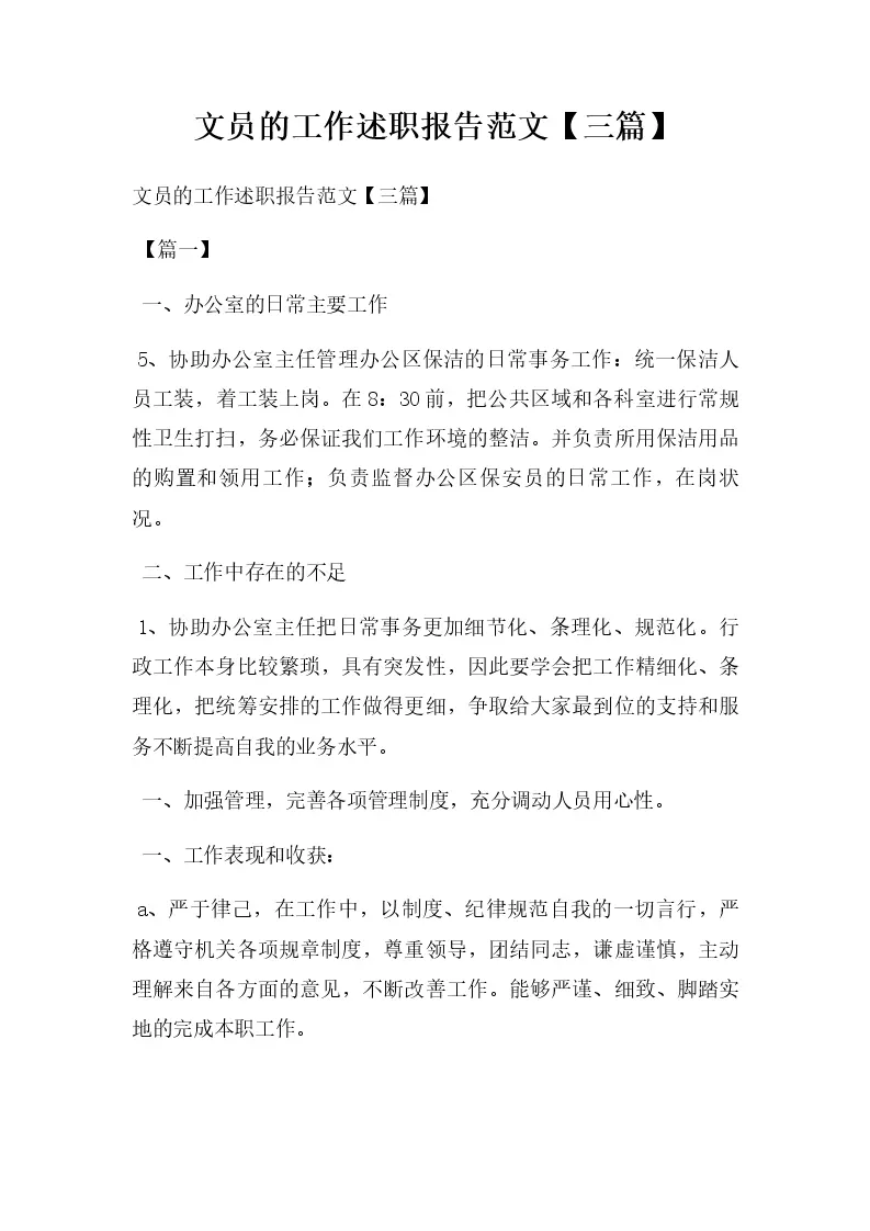 文员的工作述职报告范文【三篇】
