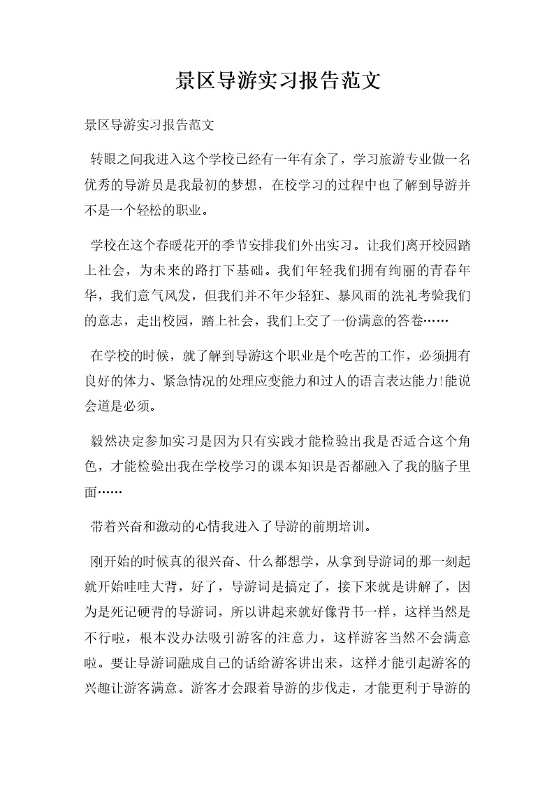 景区导游实习报告范文