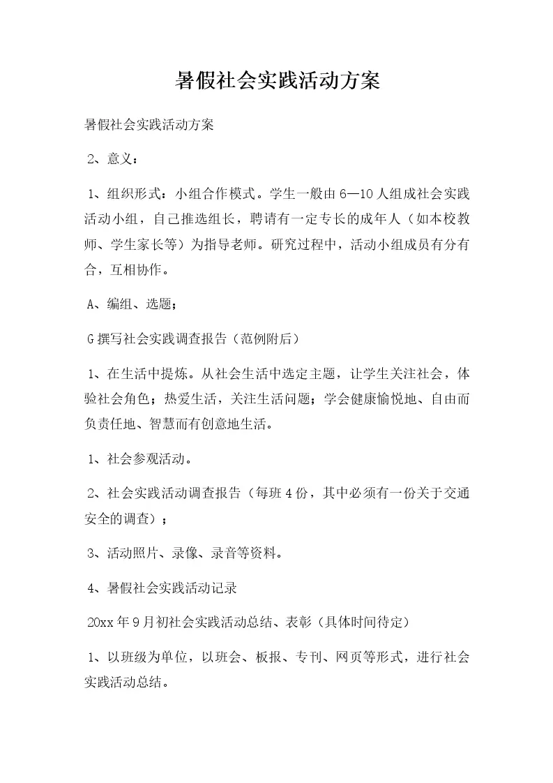 暑假社会实践活动方案