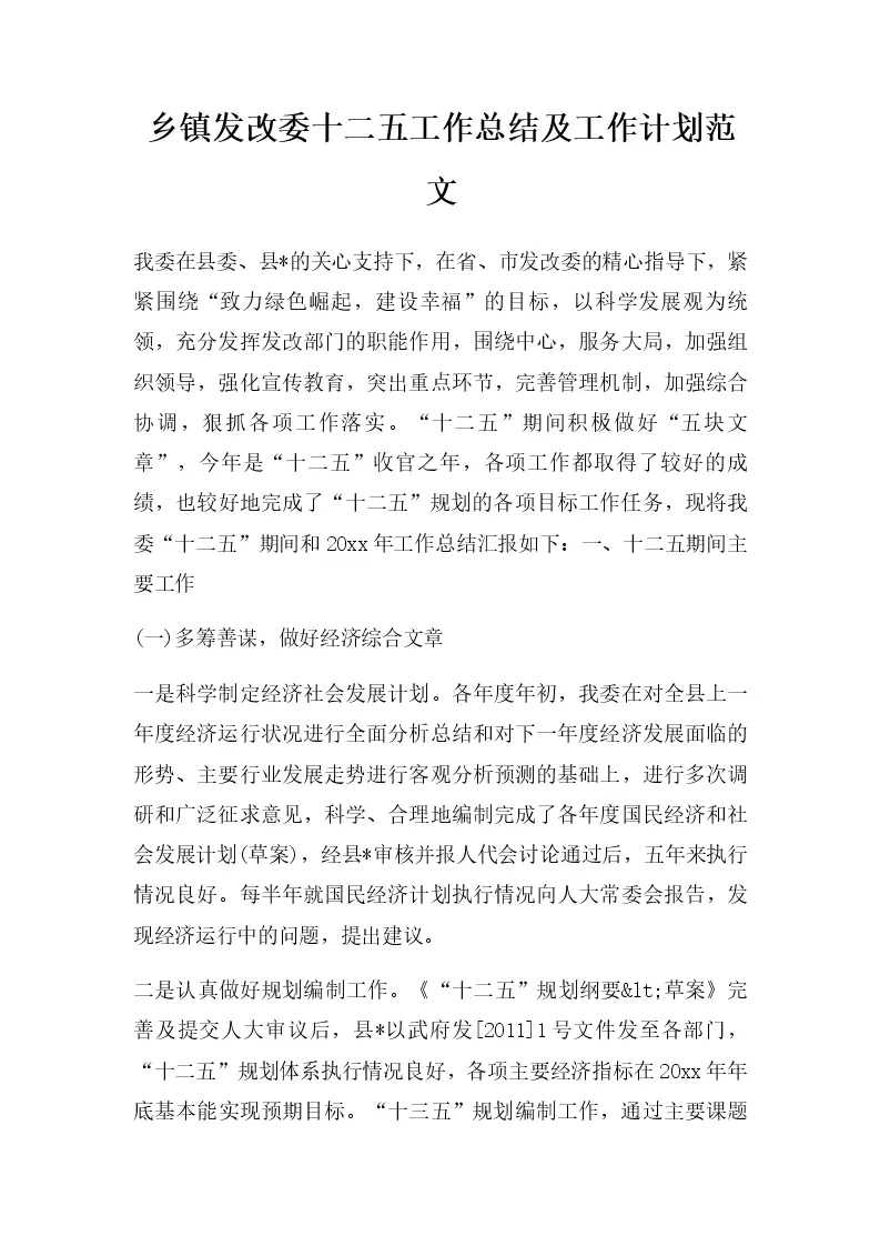 乡镇发改委十二五工作总结及工作计划范文