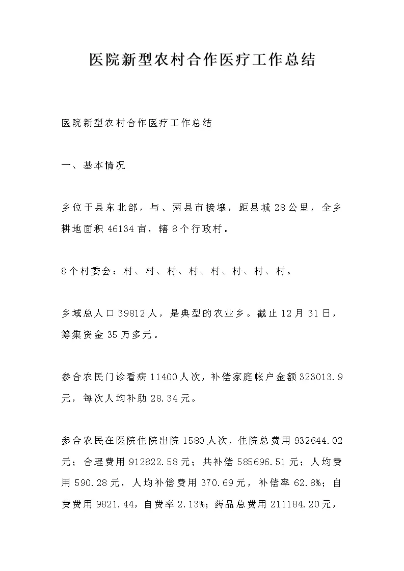 医院新型农村合作医疗工作总结
