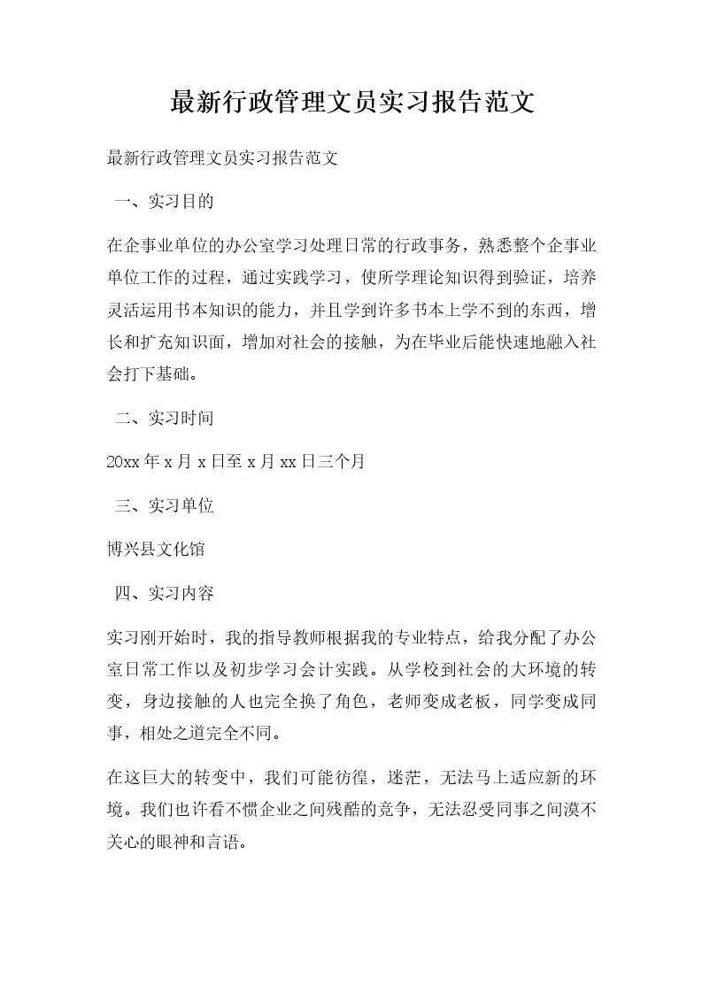 最新行政管理文员实习报告范文