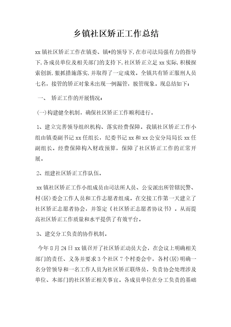 乡镇社区矫正工作总结