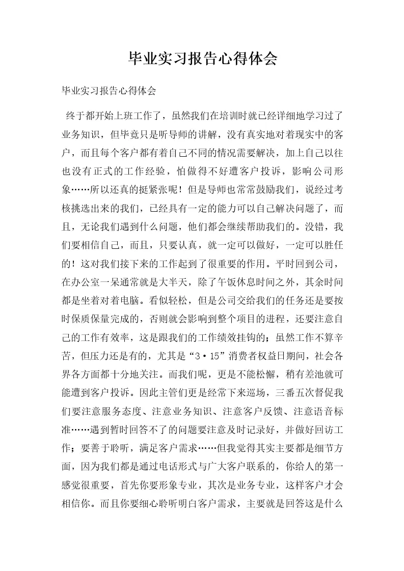 毕业实习报告心得体会
