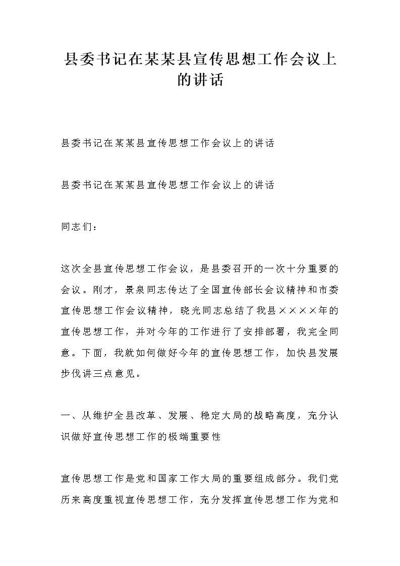 县委书记在某某县宣...