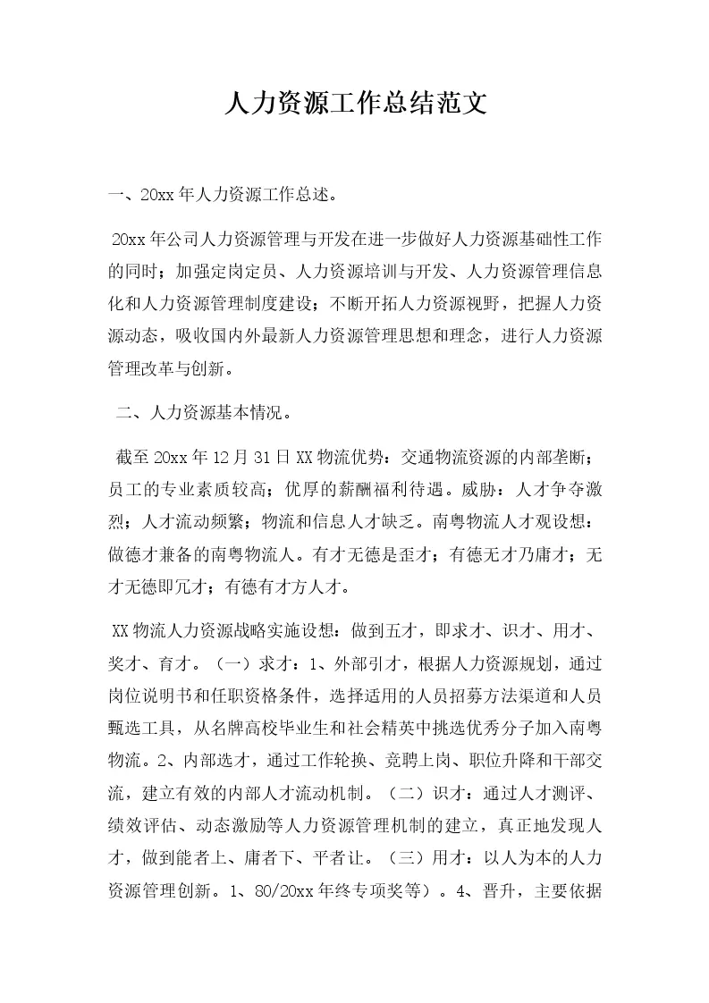 人力资源工作总结范文