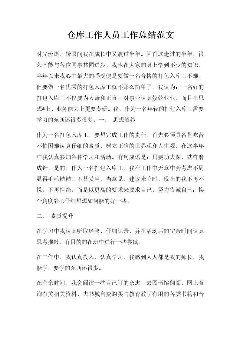 仓库工作人员工作总结范文