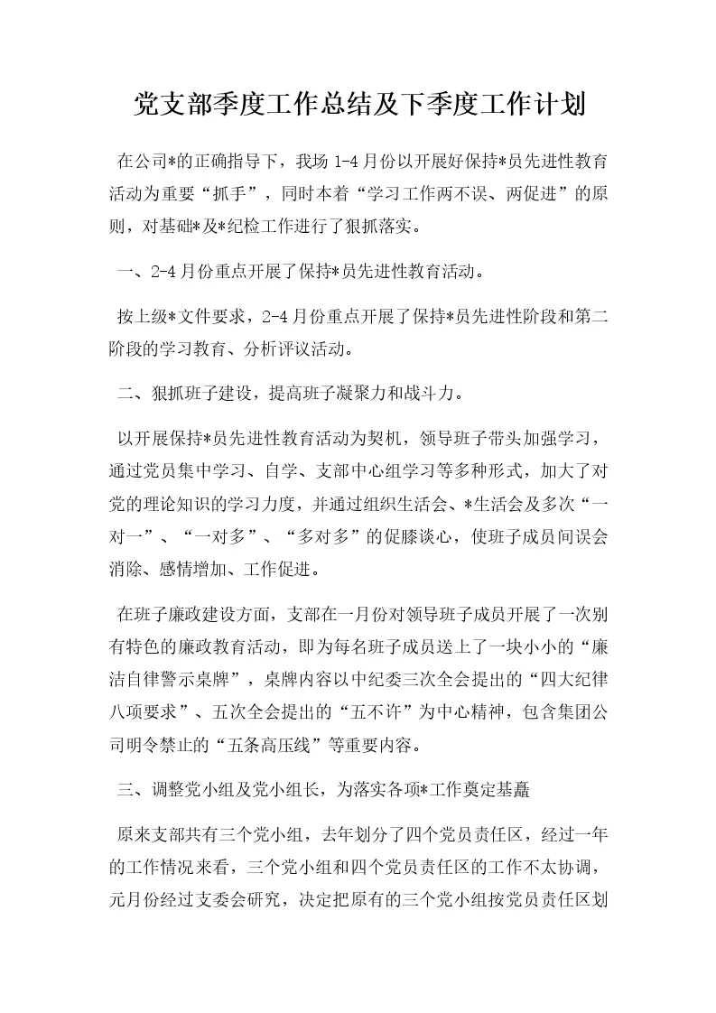 党支部季度工作总结及下季度工作计划