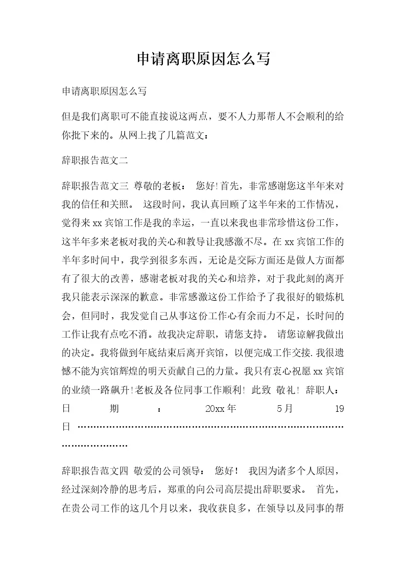 申请离职原因怎么写