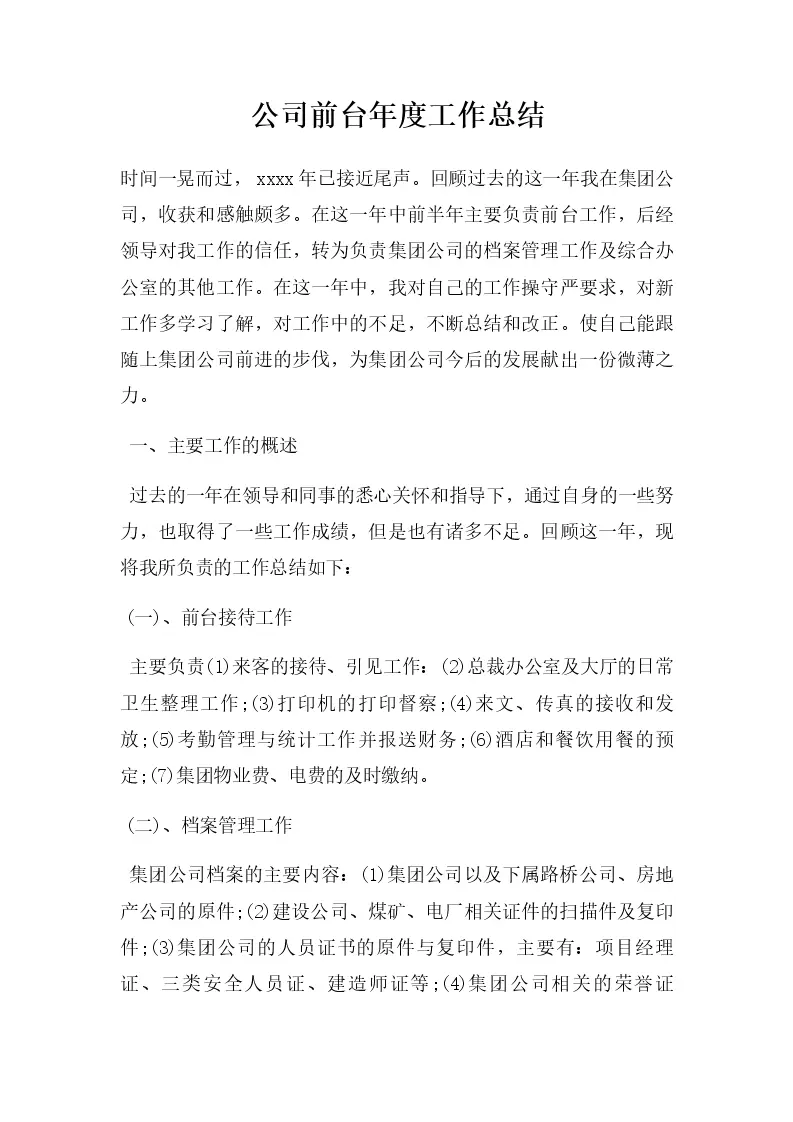 公司前台年度工作总结