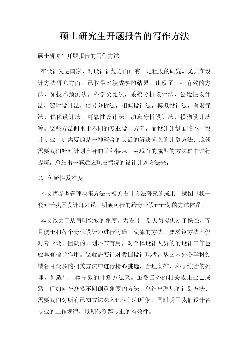 硕士研究生开题报告的写作方法