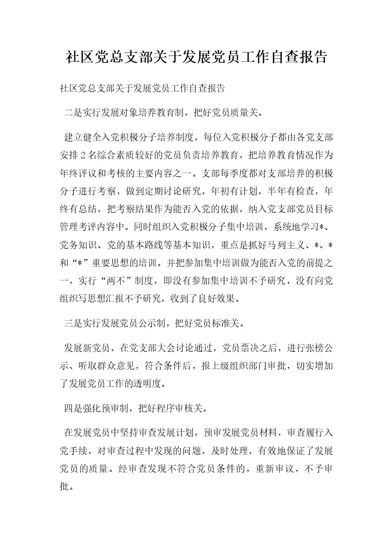 社区党总支部发展党员工作自查报告