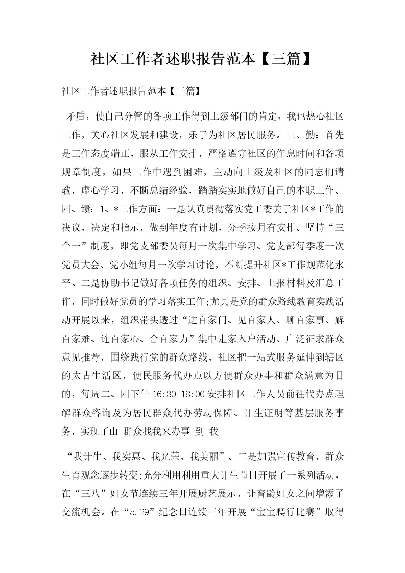 社区工作者述职报告范本【三篇】