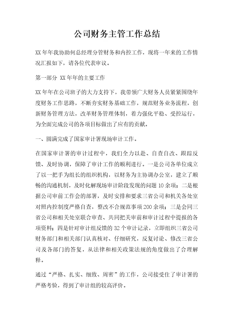 公司财务主管工作总结