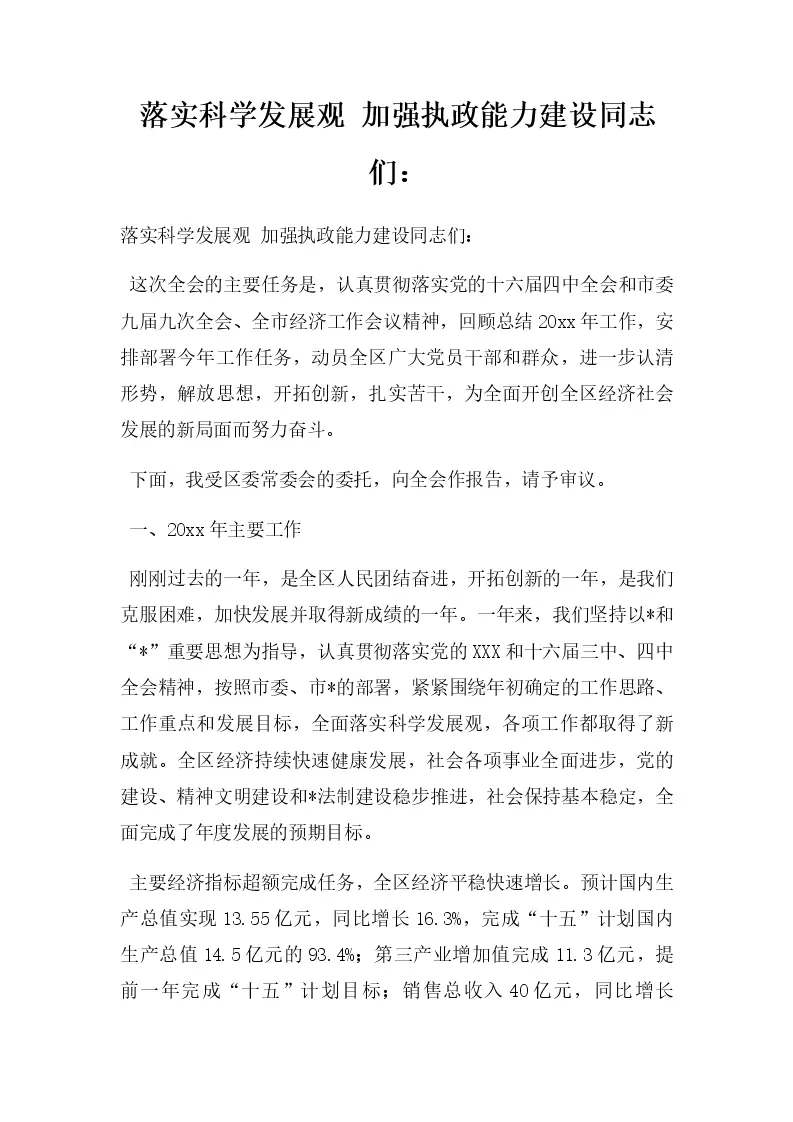 落实科学发展观 加强执政能力建设同志们:
