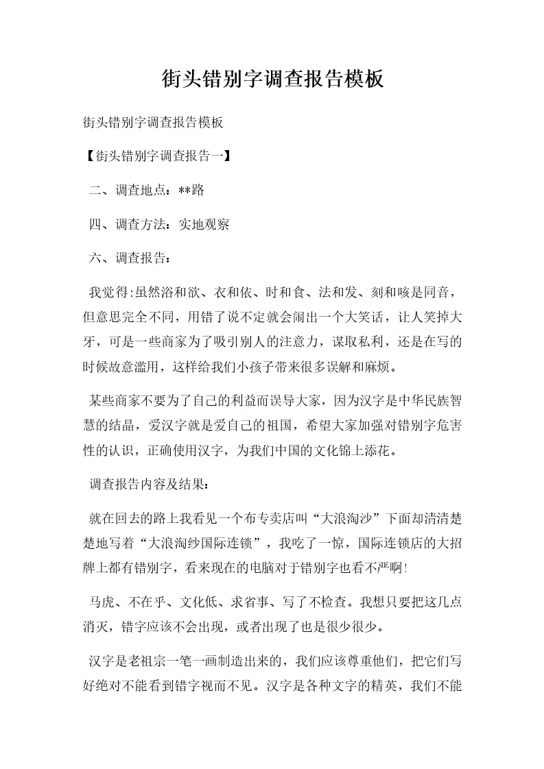 街头错别字调查报告模板