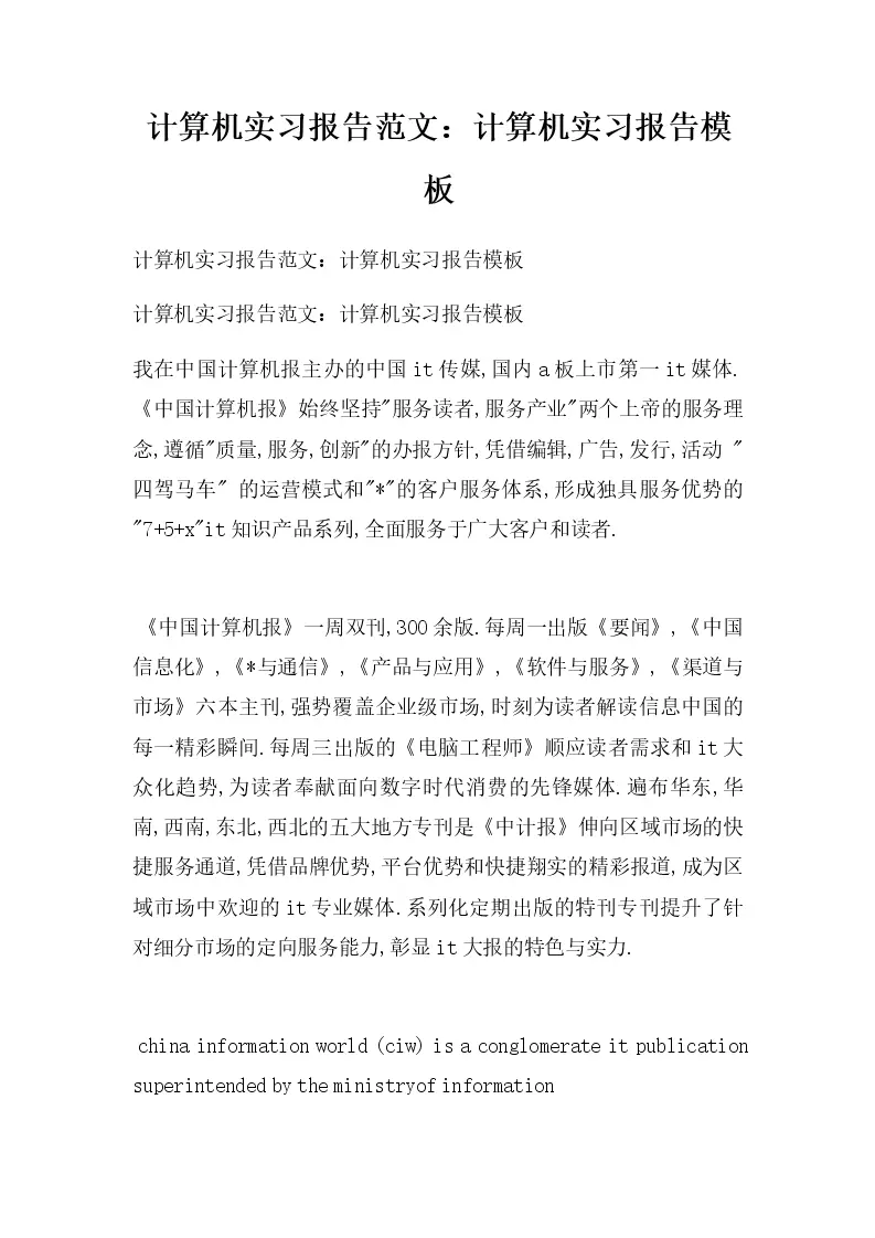 计算机实习报告范文:计算机实习报告模板