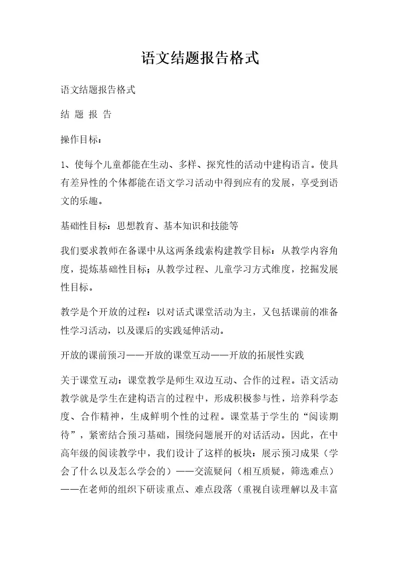 语文结题报告格式