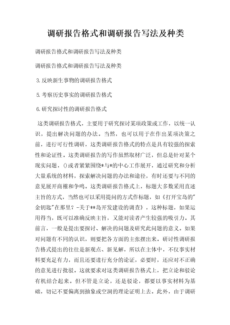调研报告格式和调研报告写法及种类