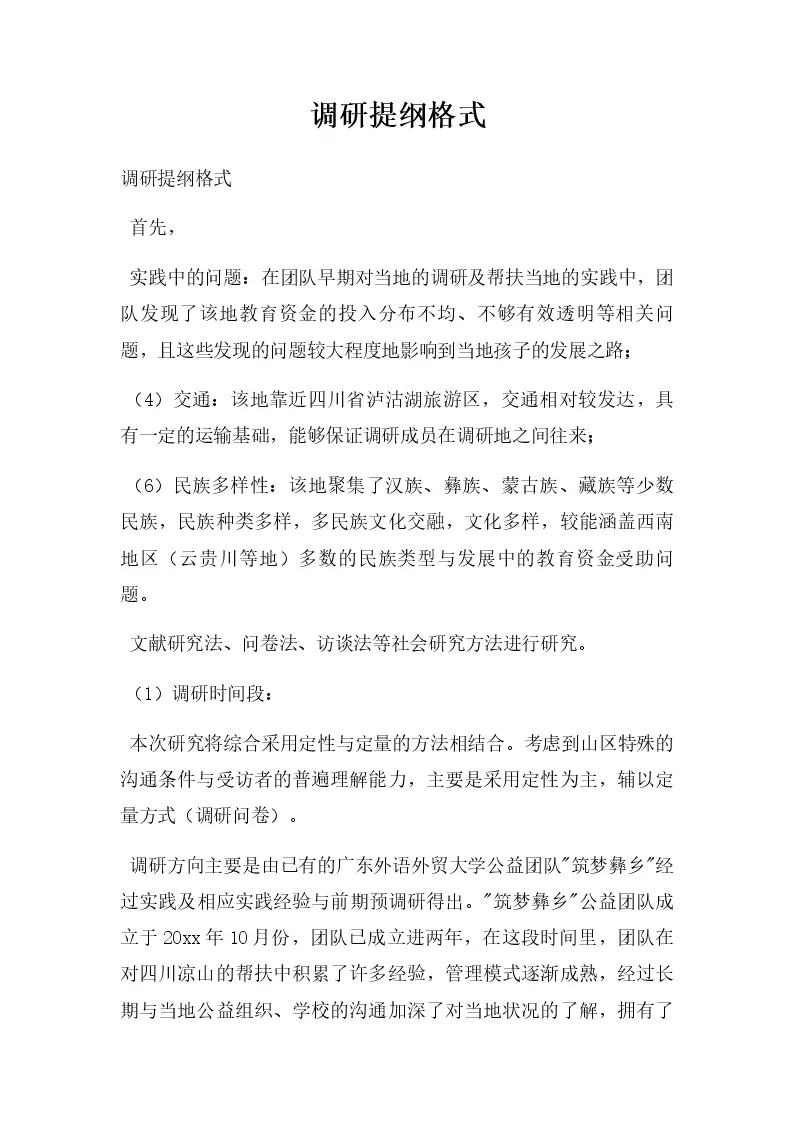 调研提纲格式