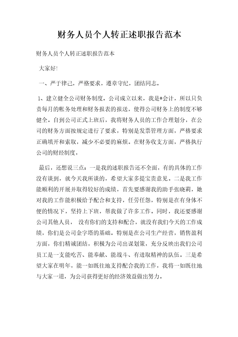 财务人员个人转正述职报告范本