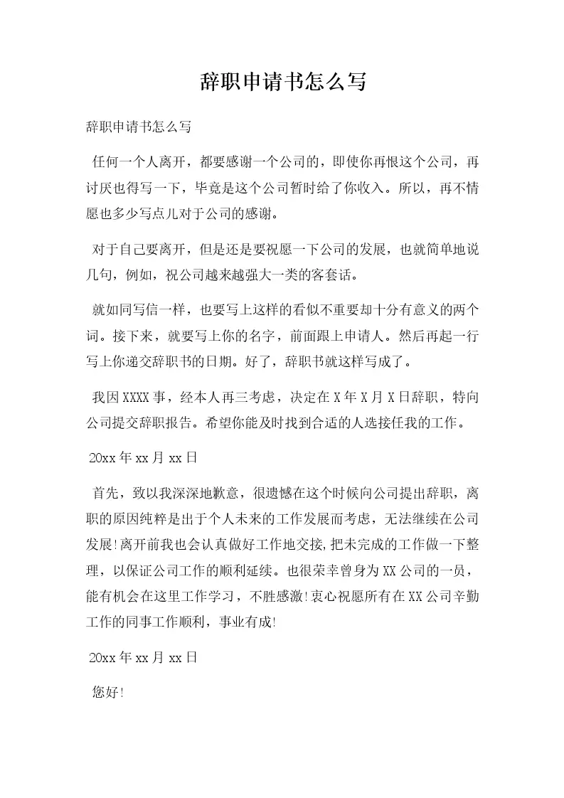 辞职申请书怎么写