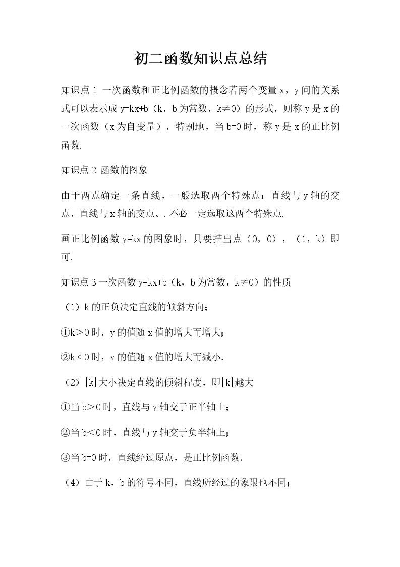 初二函数知识点总结