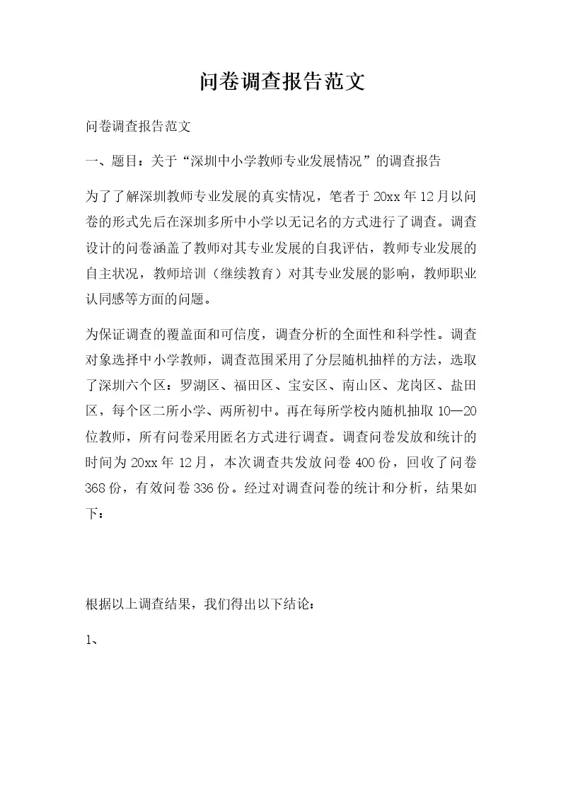 问卷调查报告范文