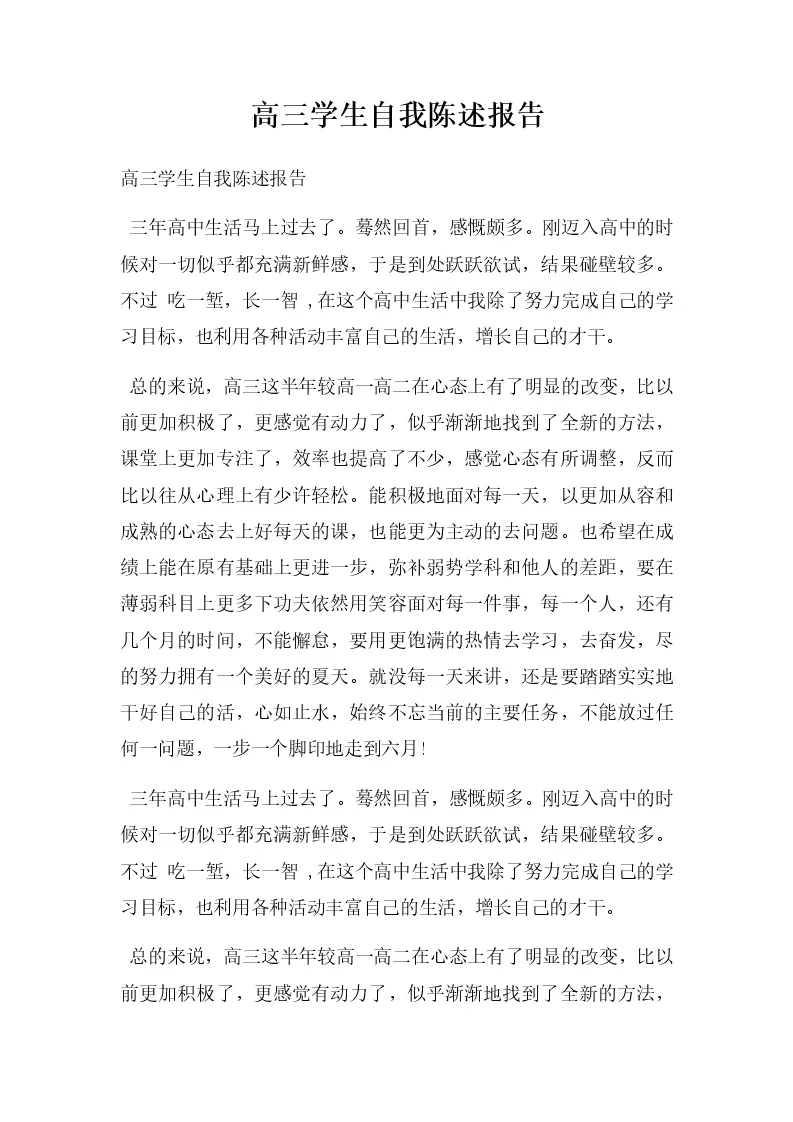 高三学生自我陈述报告