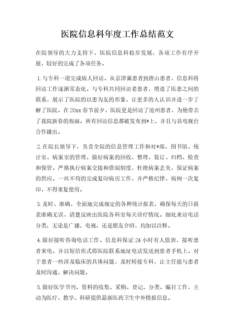 医院信息科年度工作总结范文