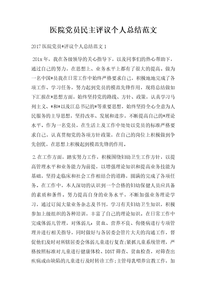 医院党员民主评议个人总结范文