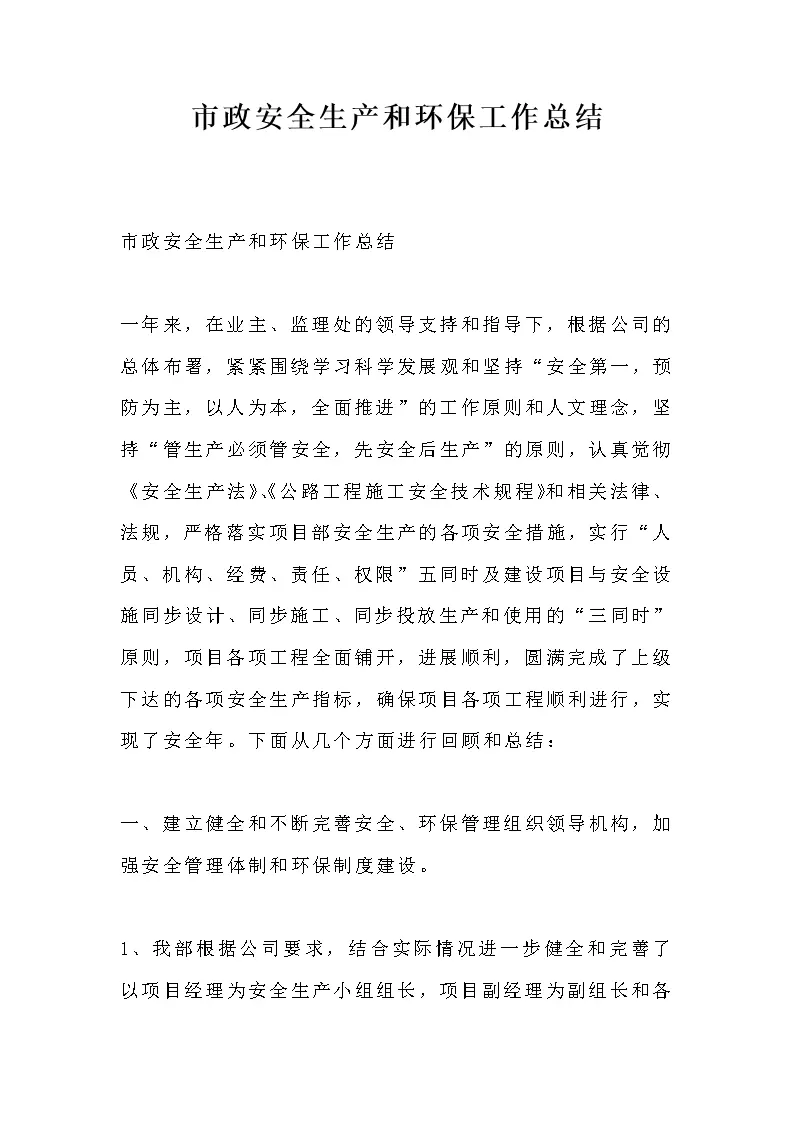 市政安全生产和环保工作总结