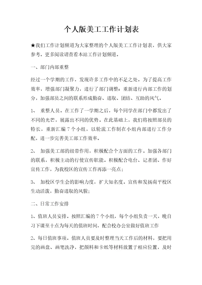 个人版美工工作计划表